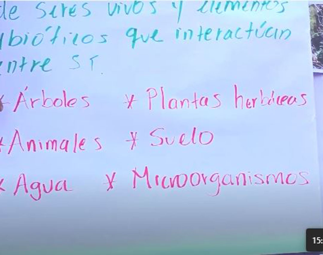 “En el bosque se pueden encontrar, árboles, plantas herbáceas, animales, suelos y microorganismos; asimismo, existen servicios ecosistémicos (fauna), entre los que figuran aves y murciélagos, que aportan a la regeneración natural y control de plaga”, explicó el maestro Kevin Ramírez.