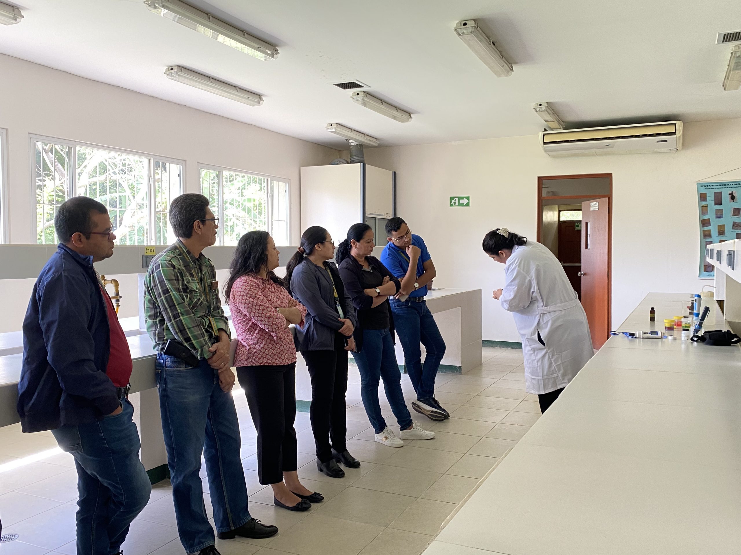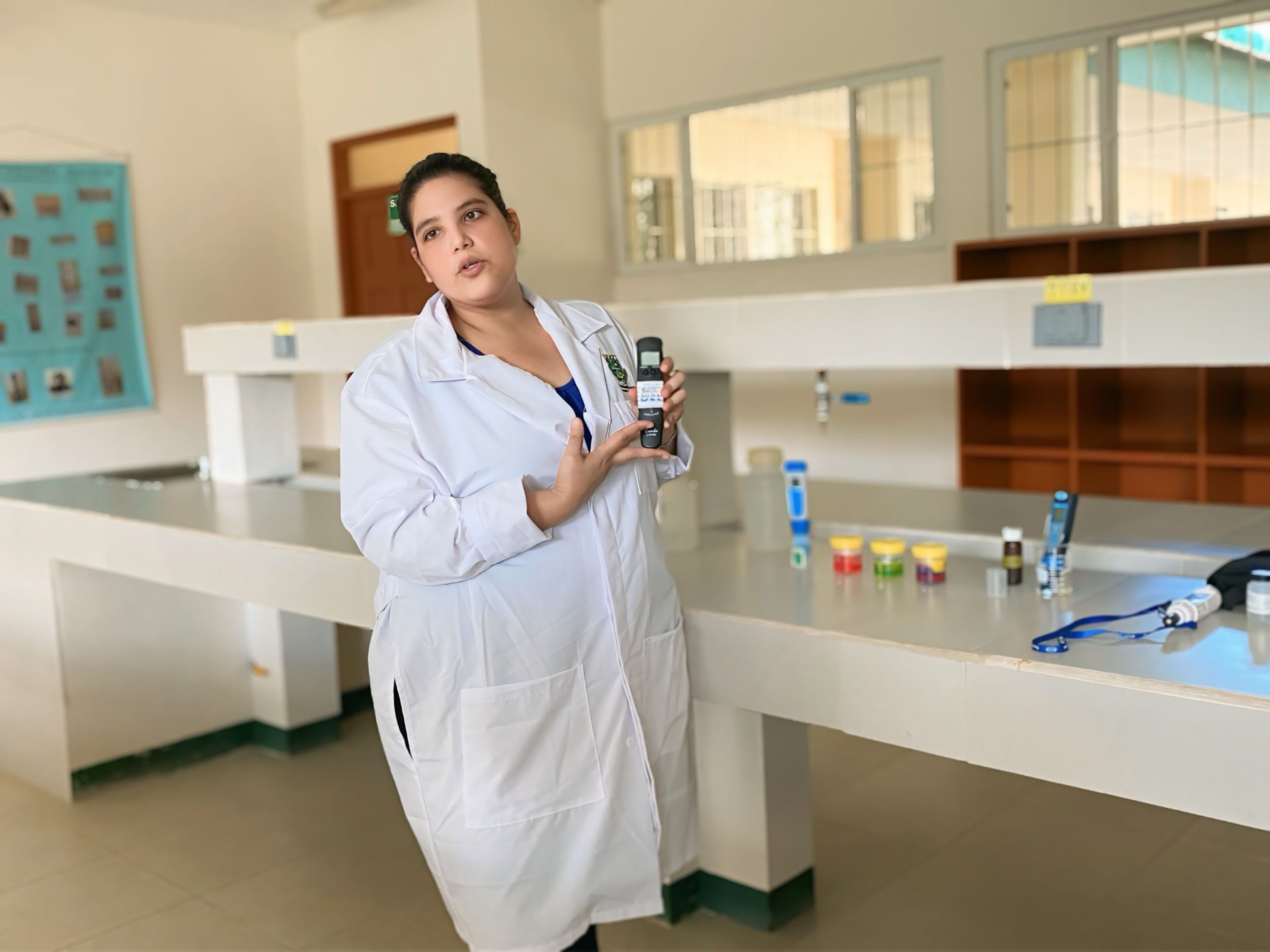 En el Laboratorio de Química de la Universidad Nacional Agraria (UNA), se llevó a cabo el taller para docentes sobre el mantenimiento y calibración de equipos para medición de PH y oxímetros utilizados en la acuicultura, dirigido por la licenciada en Química, Carol Moreno.