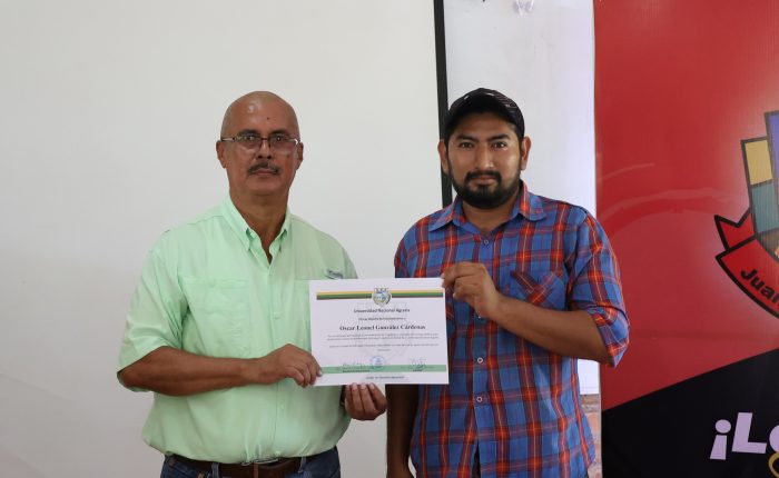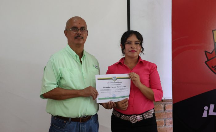 Productores recibiendo reconocimiento de participación en la Conferencia “Producción y Uso de Moringa para alimentación animal”.