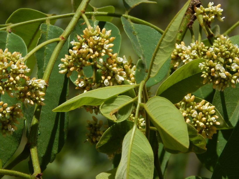 Árbol de hasta 30 m. Hojas compuestas, (11) 13-15 folíolos ovados, densamente pubescentes en el envés. Flores pequeñas, blancas o crema, en panículas. Fruto (legumbre) plano, 1 semilla.