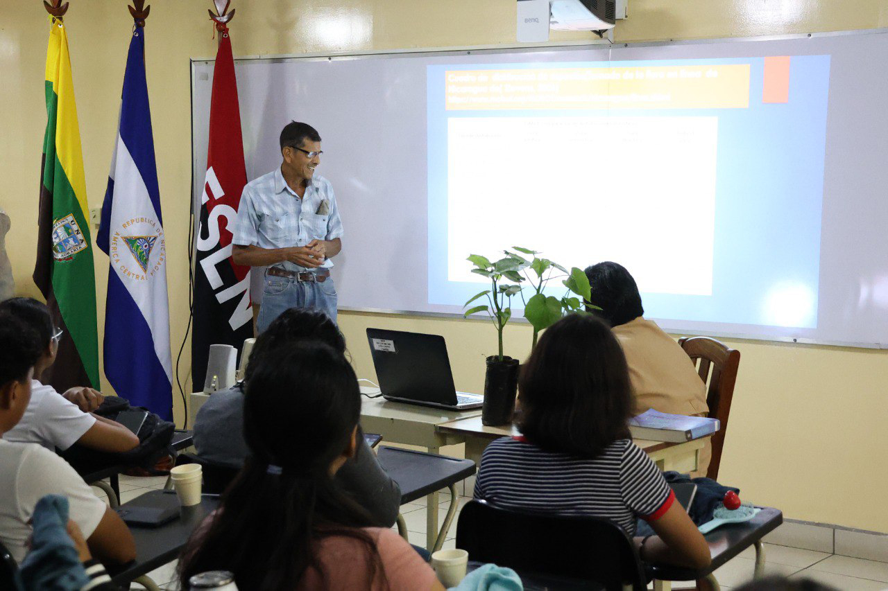 La Dirección de Ciencias Ambientales y Cambio Climático de la Universidad Nacional Agraria (UNA), compartió con los estudiantes de las ingenierías Forestal, Recursos Naturales y Agroambiental la conferencia “Tipos de flora y su impacto positivo en las comunidades de Nicaragua”, impartida por Cro. Benito Quezada, ex docente de esta casa de estudios y especialista en la rama.