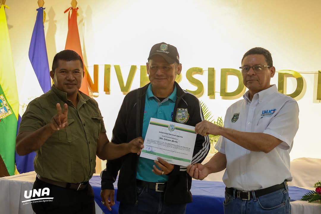 La mañana de este miércoles, la Universidad Nacional Agraria (UNA) llevó a cabo la entrega de certificados a productores provenientes de distintas zonas del país, quienes culminaron con éxito el taller técnico “Del campo a la mesa: elaboración de queso artesanal”. La actividad se realizó como parte de los esfuerzos institucionales por fortalecer las capacidades productivas y emprendedoras en las comunidades rurales.