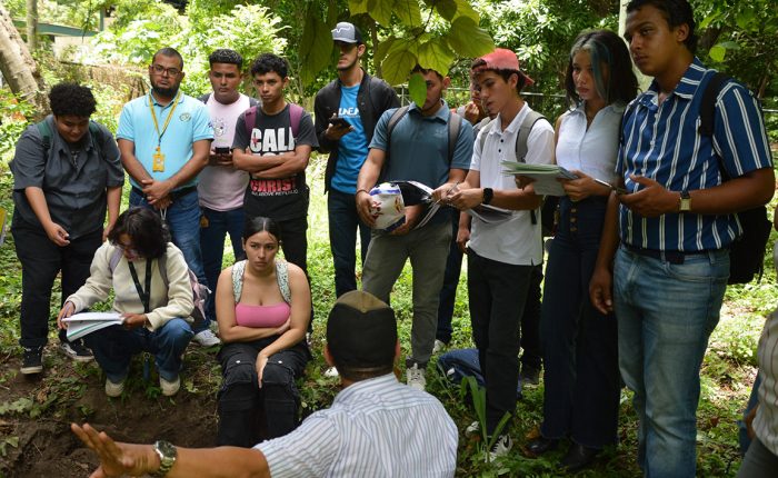 En el marco de la Estrategia Nacional de Educación “Bendiciones y Victorias”, estudiantes de las carreras de ingeniería Agrícola, Forestal y Recursos Naturales que sirven la Dirección de Ciencias Agrícolas y la Dirección de Ciencias Ambientales y Cambio Climático de la Universidad Nacional Agraria (UNA), participaron en el “Foro sobre implementación de técnicas para análisis y perfil de suelo”.